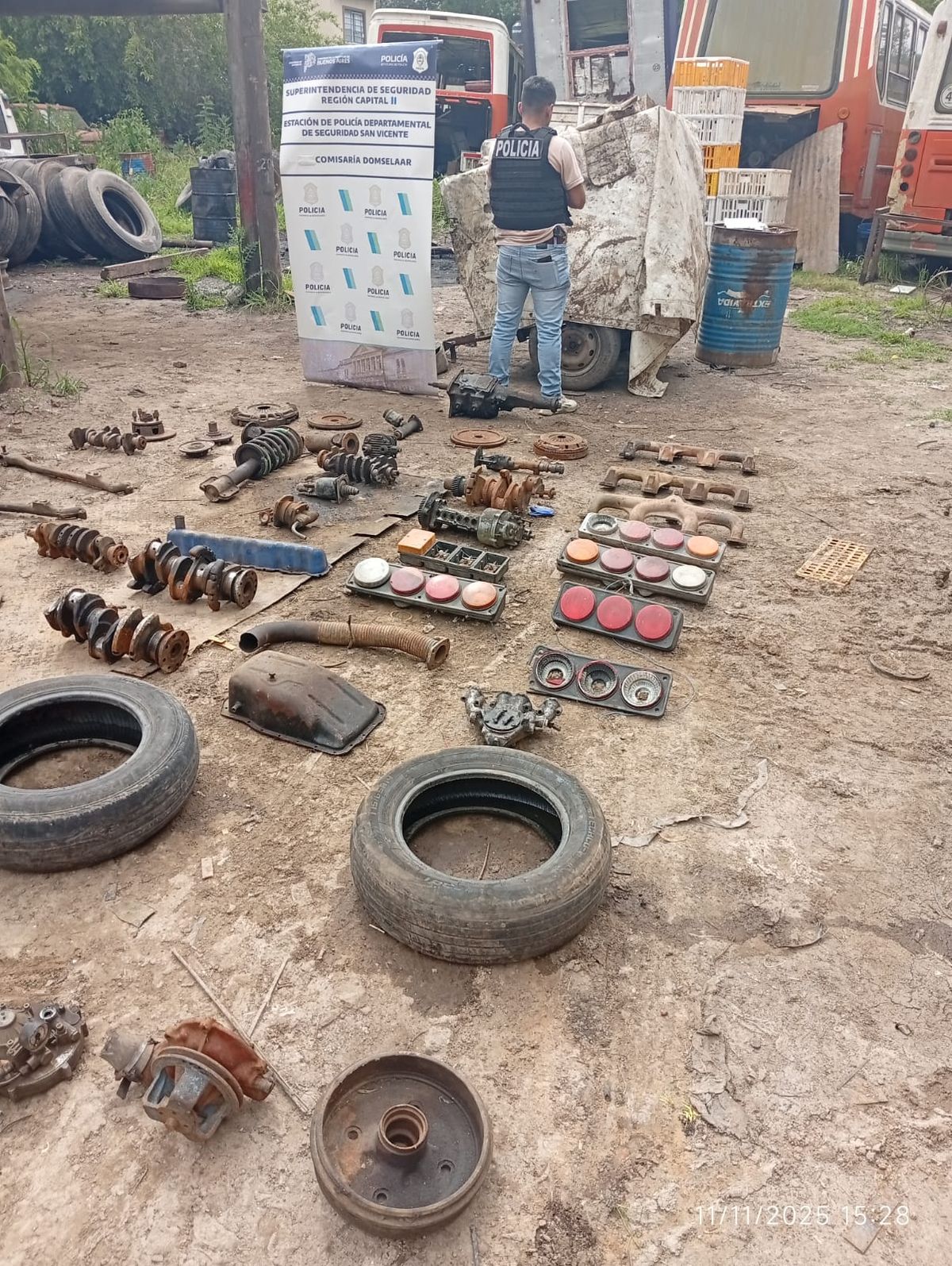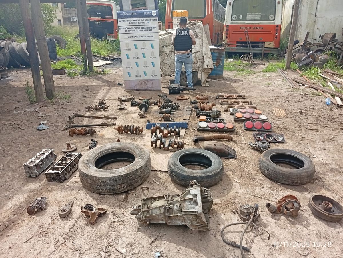 Un hombre de 36 años fue aprehendido en Domselaar durante un operativo de la Comisaría Segunda de San Vicente, en el que la Policía secuestró una gran cantidad de autopartes de procedencia presuntamente ilegal. El procedimiento se llevó a cabo en un taller mecánico ubicado sobre la Ruta 210, a la altura del kilómetro 56.