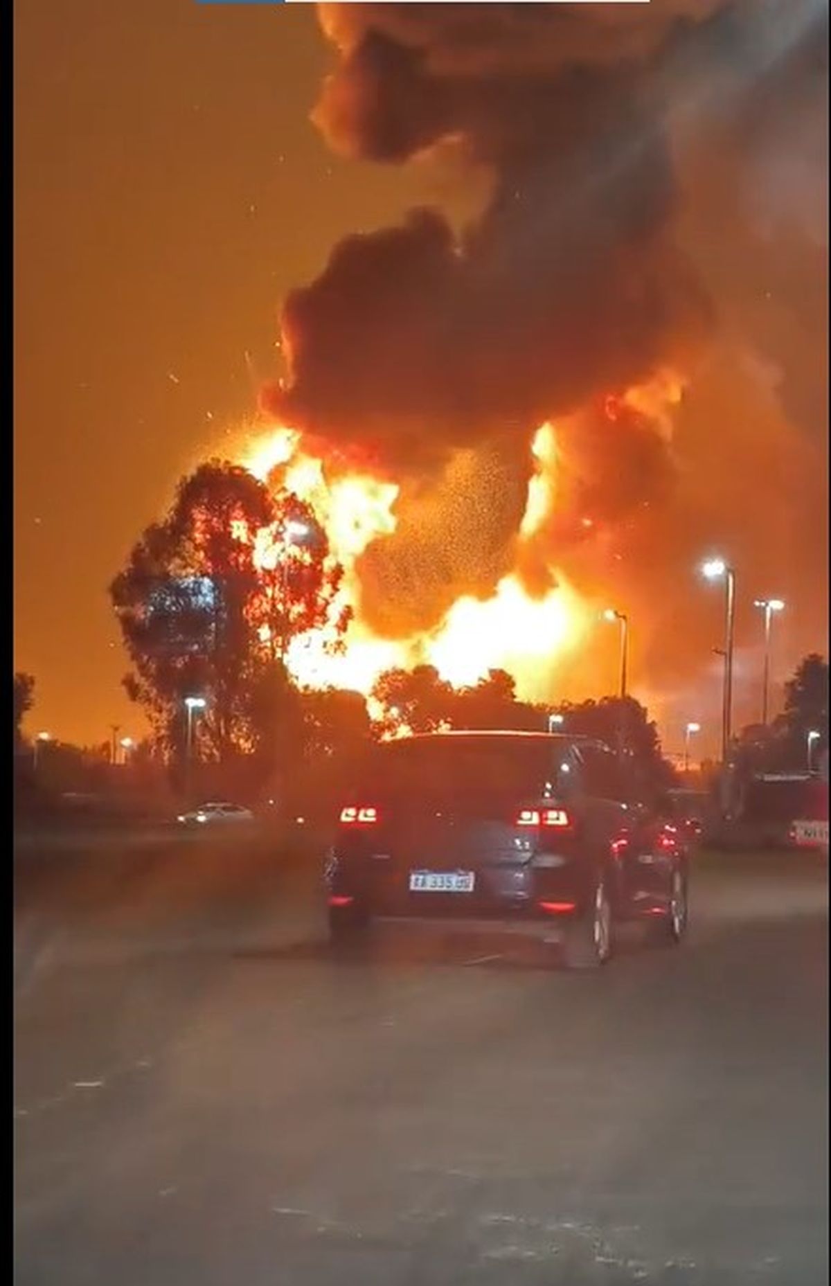 Así se vieron los primeros momentos del incendio cuando todavía estaban sucediendo explosiones en el Polo Industrial de Ezeiza.