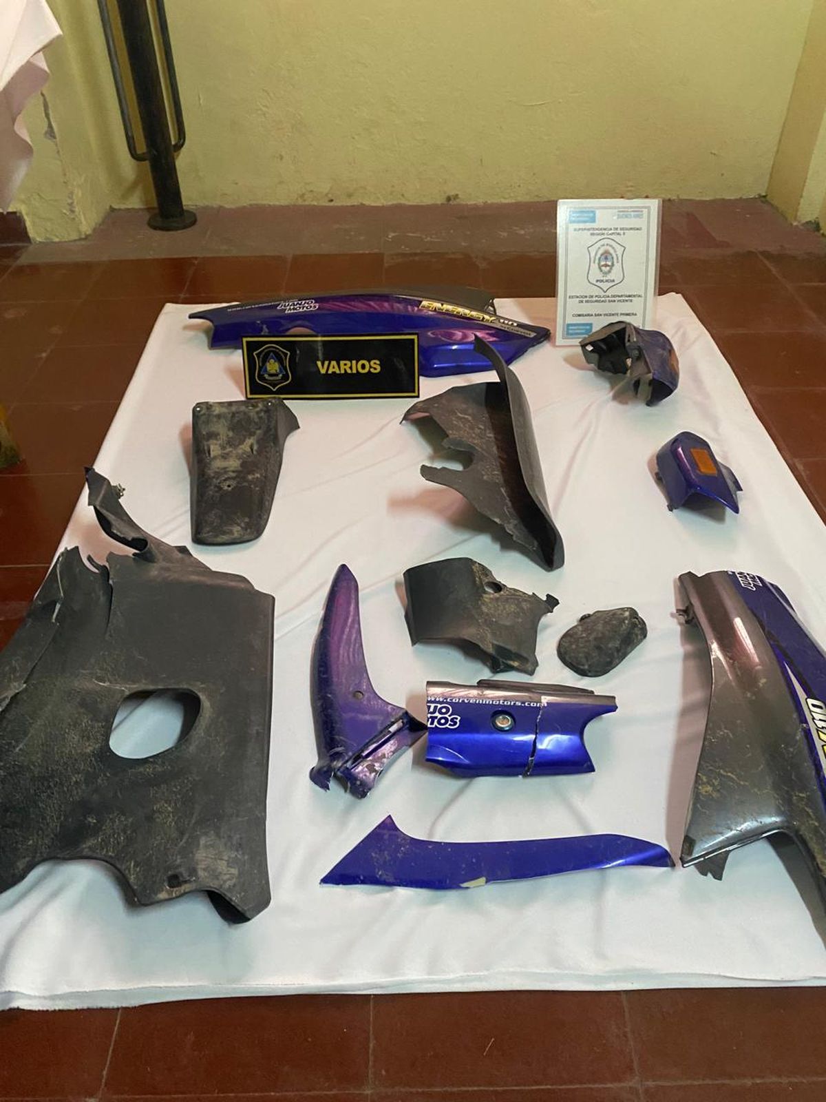 Entre los objetos secuestrados estaban partes de la moto de la victima.