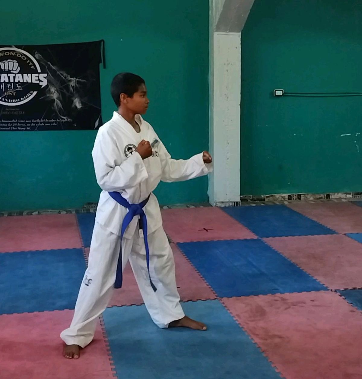 Es cinturón azul y compite en la modalidad de formas. Este año participó por primera vez en los Juegos Bonaerenses. Kenny superó las etapas regionales e interregionales hasta llegar a la final en Mar del Plata. “En la categoría 2013 había un masculino y un femenino, y en el masculino trajo oro Kenny”, celebró Jairo.