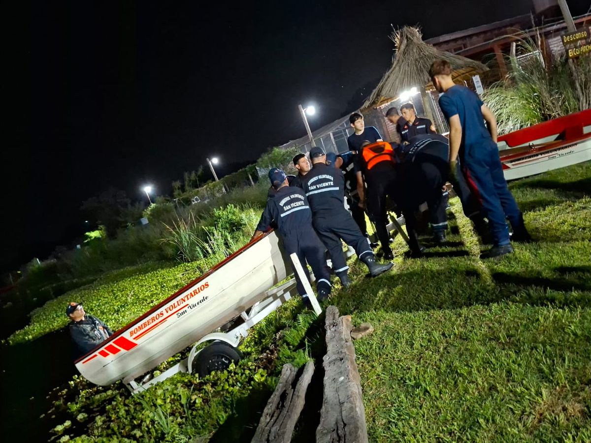 Bomberos y kayakistas de San Vicente realizaron una práctica conjunta de rescate en la laguna