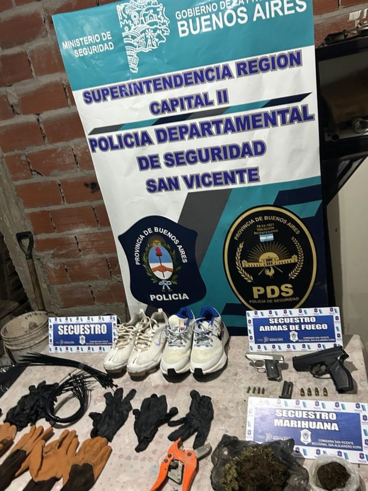 En el allanamiento de Alejandro Korn en el que el joven se escapó secuestraron armas de fuego, marihuana, bicicletas robadas y vehículos adulterados.