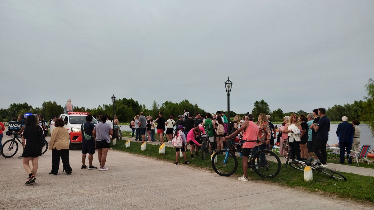 Entre los presentes también estuvo Marta Walsh, vecina de San Vicente, quien se acercó a ver el paso de la imagen: “No solo que es para la gente local, sino que hay mucha gente que viene de otros lados y bueno, es positivo. Ojalá que todo esto sirva para unir a todos”, afirmó. Además, contó que siguió la procesión desde la orilla: “La estuve mirando cuando venía de lejos, chiquitita, pero nos quedamos acá porque no puedo caminar mucho. Nos avisaron que la bajaban acá y entonces vinimos. Es una linda actividad, por supuesto”. Sobre el sentido de la jornada, agregó: “Unifica un deporte con la vida de la iglesia también”.