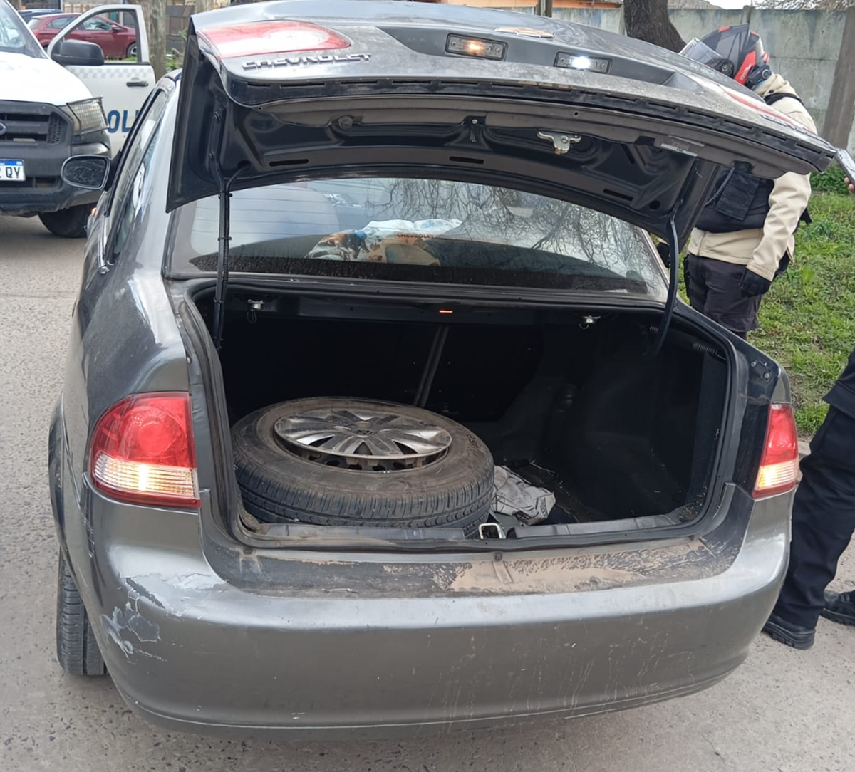 El procedimiento estuvo a cargo de efectivos del Comando de Patrullas local, tras un llamado al 911. Según informaron fuentes policiales, los sospechosos (un hombre de 32 años y una mujer de 41) habrían sustraído la rueda trasera derecha de un Volkswagen Gol que se encontraba estacionado en Lavalle al 500. Tras un rápido operativo, fueron interceptados en la intersección de Alberdi y Castelli, donde se concretó la detención.