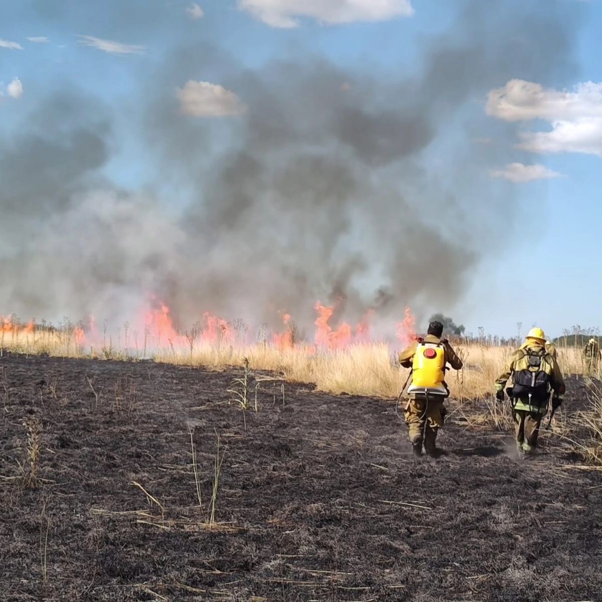 También contó que, ante la urgencia, “entre los mismos vecinos fuimos cortando alambres para pasar animales de un campo al otro y hacerlos escapar del fuego”. Sobre la magnitud del incendio, sostuvo que había “lenguas de fuego de dos metros y medio de alto”, con un contexto adverso marcado por “el viento y la falta de lluvia”.