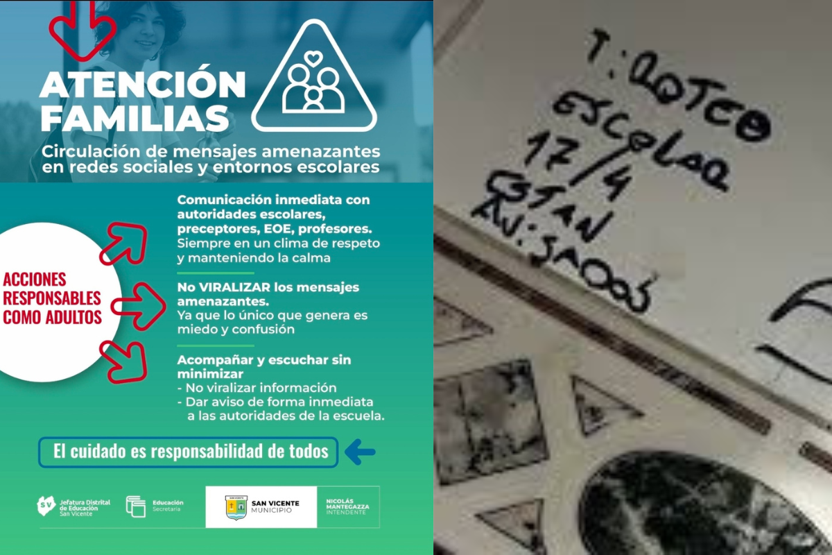 Por su parte, el Municipio difundió recomendaciones para las familias ante la circulación de mensajes amenazantes: “No viralizar los mensajes amenazantes”, ya que “lo único que genera es miedo y confusión”. También pidieron “dar aviso de forma inmediata a las autoridades de la escuela” y promover el diálogo con los estudiantes.