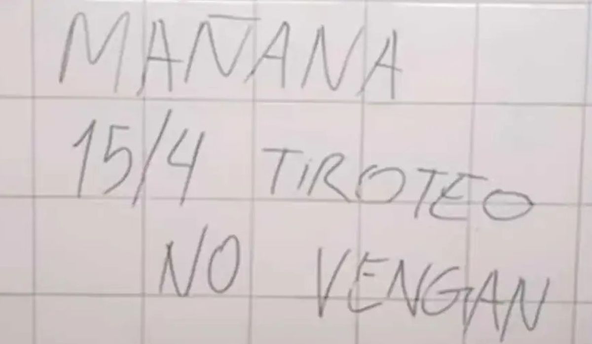 Situaciones de este tipo se replicaron en distintos puntos del país en los últimos días, con amenazas en escuelas de Caballito, La Plata, Avellaneda, Ituzaingó, y Morón, entre otras localidades. En varios casos, los mensajes advertían sobre supuestos ataques en fechas cercanas, como “Mañana 15 tiroteo, no vengan”, lo que motivó la activación de protocolos de seguridad. Se trataría de un reto viral que se difundió en las redes sociales.