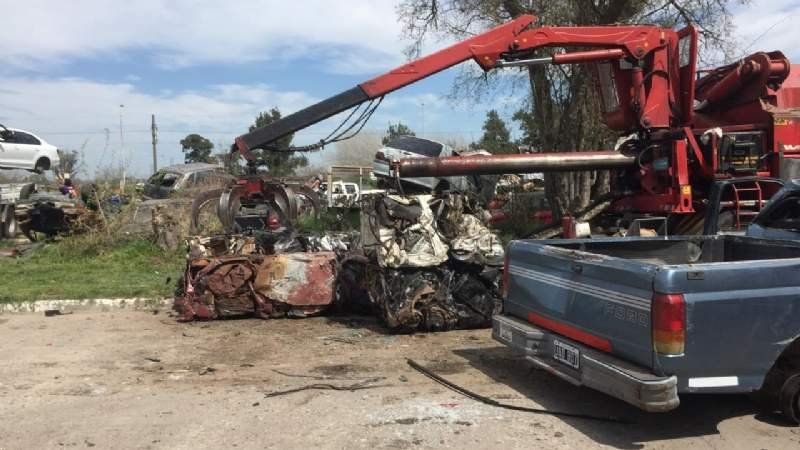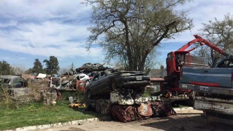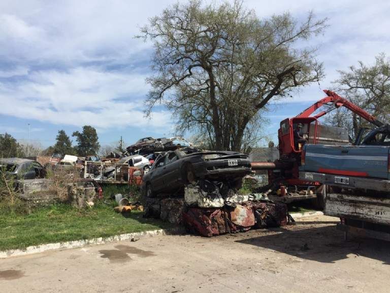 Ya compactan los autos que se acumulan como chatarra en San Vicente, Korn y Domselaar