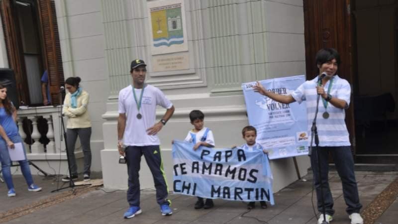 En un acto improvisado en la puerta del palacio municipal, Matayoshi y Mourelle relataron emocionados sus aventuras en Malvinas. Y prometieron volver a la maratón del año que viene.