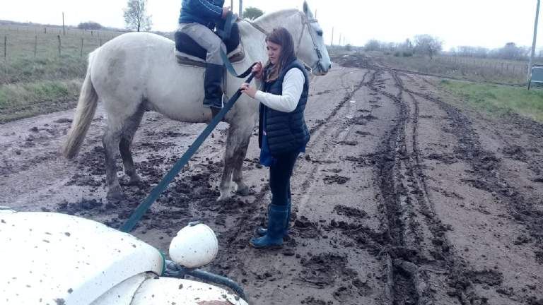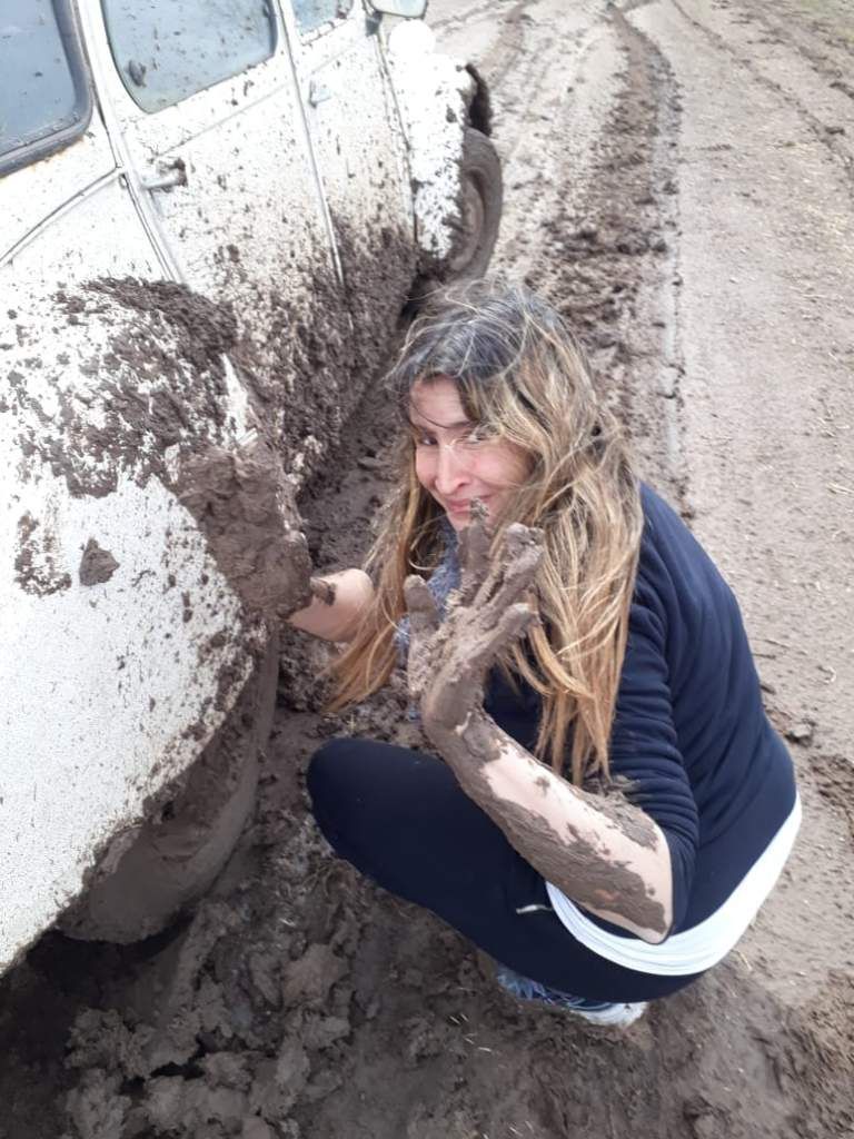 Algunas pocas veces el barro fue demasiado para el fiel escarabajo y enseguida aparecieron en auxilio los padres de los alumnos de la escuela. Una vez me tiraron en camioneta y otras veces me sacaron en un carro y a caballo, se ríe Claudia. Cualquier método es válido con tal de llegar a horario, izar las banderas, servir el desayuno y que empiece la clase.