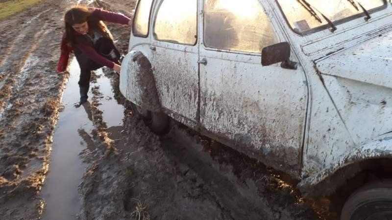 La historia de la maestra rural que le gana al barro con su viejo Citröen