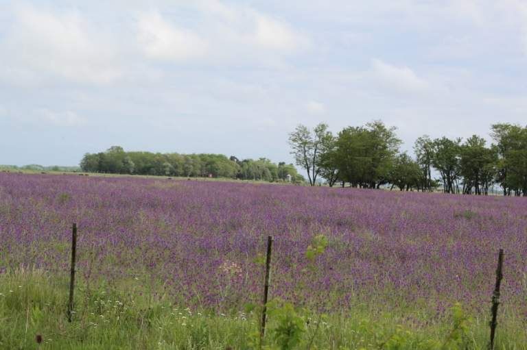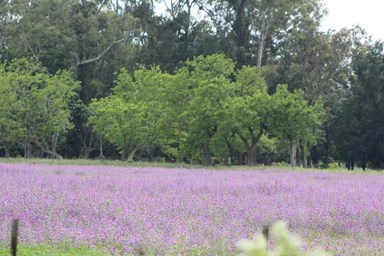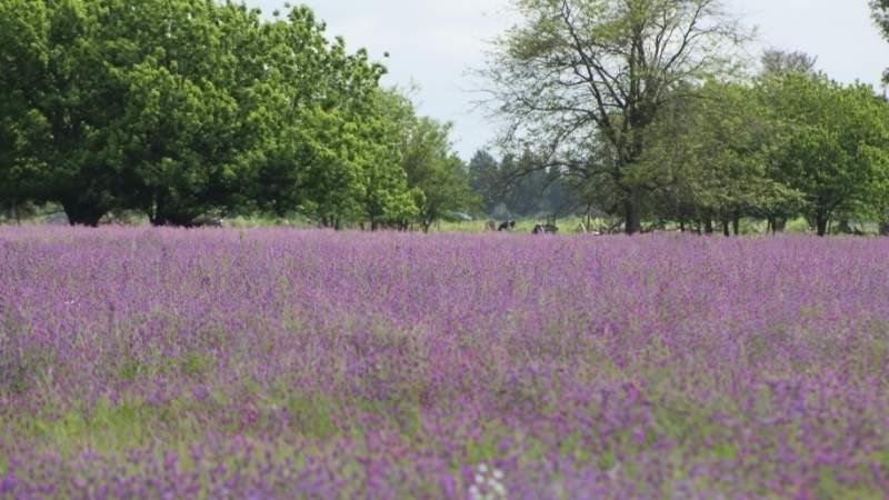 Según explicaron a El Diario Sur expertos en temas rurales, las flores violetas son en realidad producto de una siembra de alfalfa que se mantuvo por más tiempo del aconsejable. Se ve que el productor sembró alfalfa, pero la dejó estar más de lo recomendable. El violeta queda lindo, pero así la alfalfa deja de ser útil para aumentar la producción de leche de las vacas. Les llena a la panza a los animales, pero deja de cumplir su función, aseguraron.