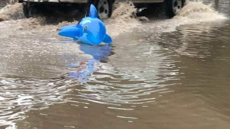 Pero también hubo lugar para el humor a partir de una imagen que se hizo viral en las redes sociales. Diferentes usuarios sacaron fotos de un juguete inflable para pileta con forma de tiburón que apareció esta mañana flotando sobre la avenida Sarmiento. Hubo todo tipo de especulaciones y comentarios disparatados. Algunos creyeron que se trataba de una ballena y la apodaron Willy.