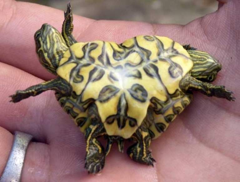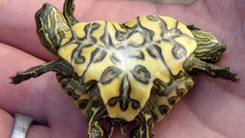Extraordinarias imágenes: Encuentran a una tortuga mutante con dos cabezas y seis patas
