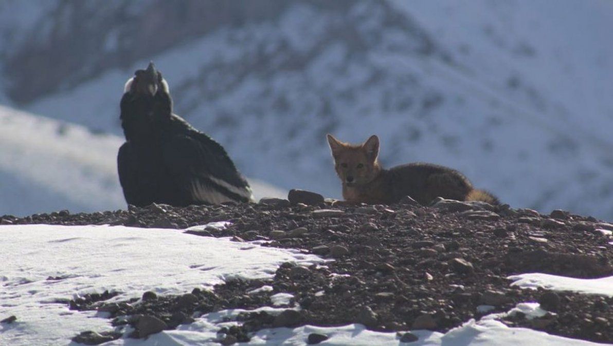 Dos guardaparques registraron el momento exacto donde un cóndor y un zorro se encontraban juntos en el Aconcagua.