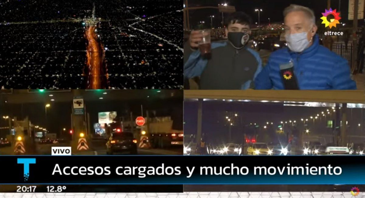 Un transeúnte con un vaso en la mano decidió intervenir la conversación con una energía única cuando los periodistas dialogaban sobre los controles en la circulación que hubo este fin de semana en los accesos entre la provincia de Buenos Aires y la Ciudad Autónoma.