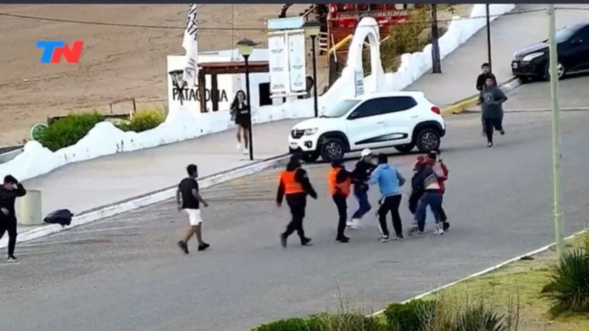Pero las buenas intenciones de Lapegüe no se vieron reflejadas segundos después, cuando los siete jóvenes (tres de un grupo y cuatro del otro) que estaban en imagen prácticamente se pusieron de acuerdo para empezar la pelea. Dos agentes de tránsito llegaron medio minuto después del comienzo de la gresca, pero al ser sólo dos efectivos no pudieron contener del todo a los jóvenes violentos, que continuaron golpeándose.