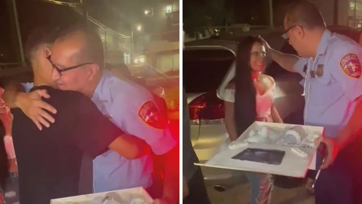 Un policía de Puerto Rico se hizo viral luego de ser sorprendido por sus familiares mientras trabajaba en el cuartel para recibir la hermosa noticia de que será abuelo.