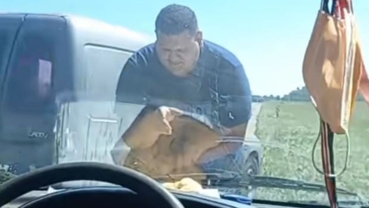 La camioneta se le había quedado en plena ruta y el hombre creyó que todo se iba a solucionar "curándole el empacho". Mirá el video que se volvió viral.