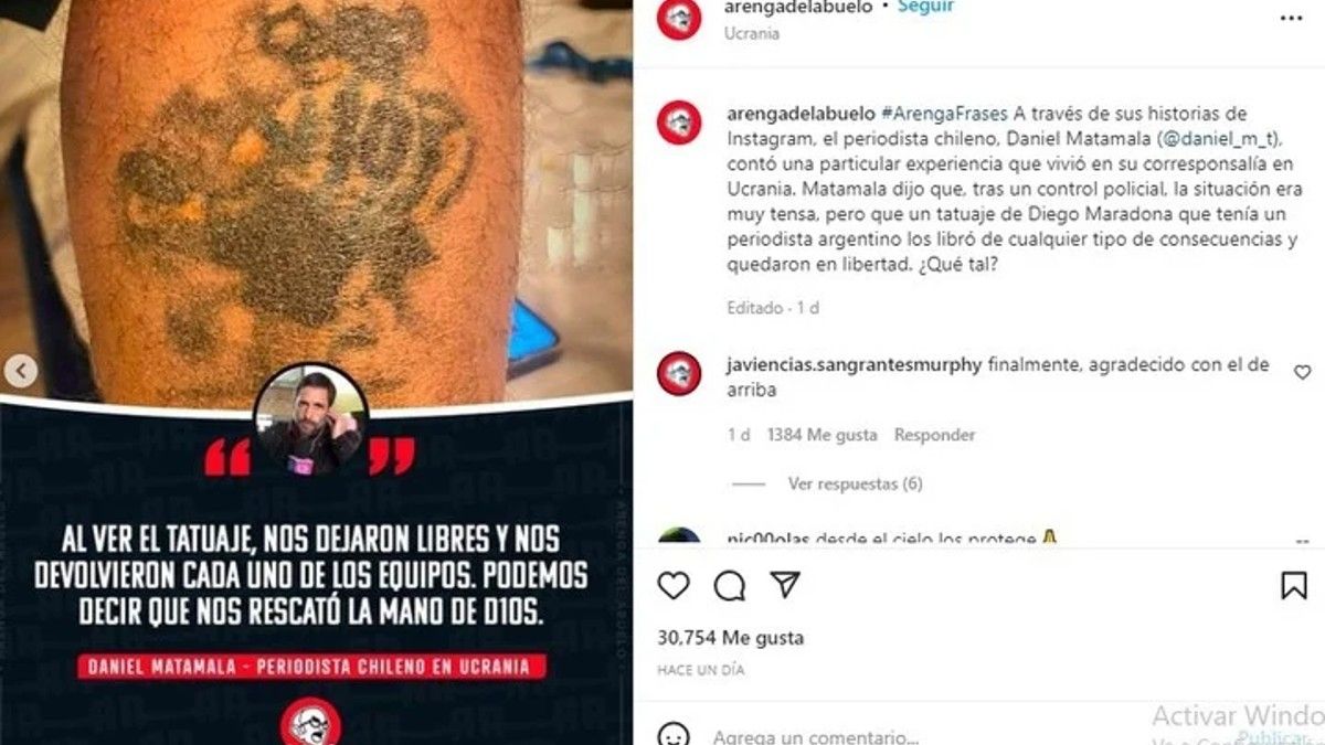 Un periodista de Chile, corresponsal de guerra en Ucrania, compartió a través de Instagram un tenso momento que le tocó vivir en un control policial. Sucedió durante el fin de semana cuando fue retenido junto a varios periodistas de distintas nacionalidades, pero hubo una clave en su liberación: un tatuaje de Diego Maradona.