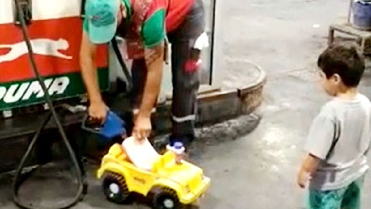 Un nene le pidió a su mamá algo que no la sorprendió, puesto que sabe de su debilidad por su “máquina”, un impecable auto amarillo en escala acorde a su edad. Un “usado” con algunos signos de uso intensivo, pero que al parecer muy fiel en cada carrera. Lo que no esperaba, era la respuesta del encargado del surtido de nafta, quien le cargó combustible a su autito y se volvió viral.