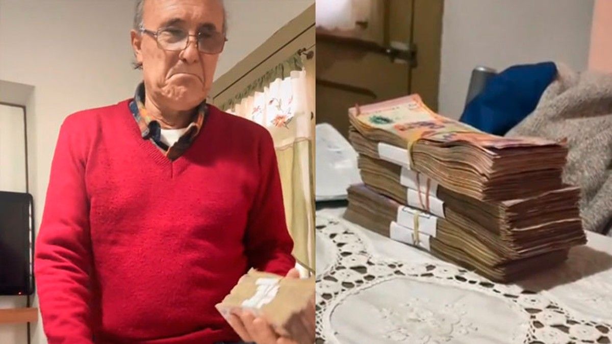 Mostró la cantidad de billetes que cobra por la jubilación y se hizo viral