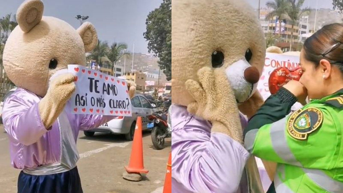 El hecho fue dado a conocer por la cuenta @Eridetallitos, en donde se observa como el hombre llegó hasta el lugar donde trabaja su novia, quien es policía, en Perú. Además, el hombre llegó con una caja de regalos para la mujer, un globo y un romántico mensaje escrito en un cartel.