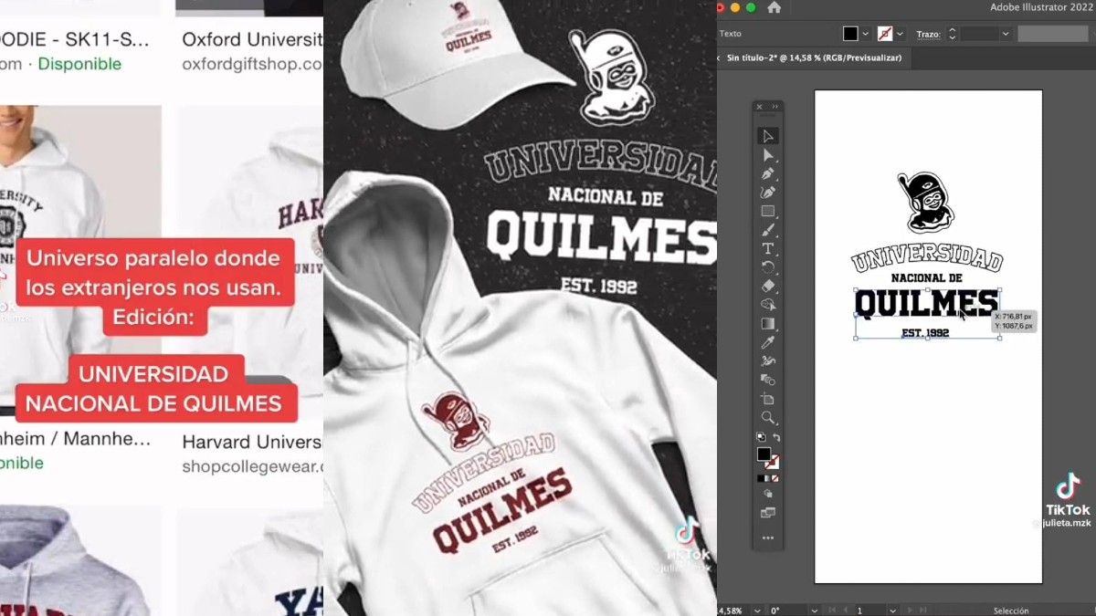 Tras ello, un influencer de dicha red social citó el tuit y compartió el video realizado por Julieta, una ilustradora de Quilmes que en TikTok figura como @julieta.mzk y en Instagram como @julietamzk. "Que esta piba arranque a monetizar urgente", escribió @bbbolsa junto a la propuesta de buzo para la UNQ. En el clip se puede apreciar el novedoso ofrecimiento de la joven. "Universo paralelo donde los extranjeros nos usan. Edición: la Universidad de Quilmes", describió al inicio del posteo.