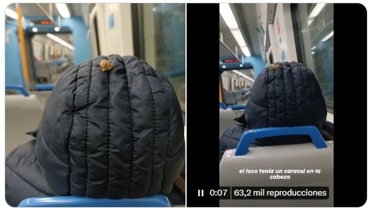 Allí, un pasajero viajaba acompañado de otro intruso, quien seguramente no habrá pagado el boleto: un caracol que se movía por su cabeza.