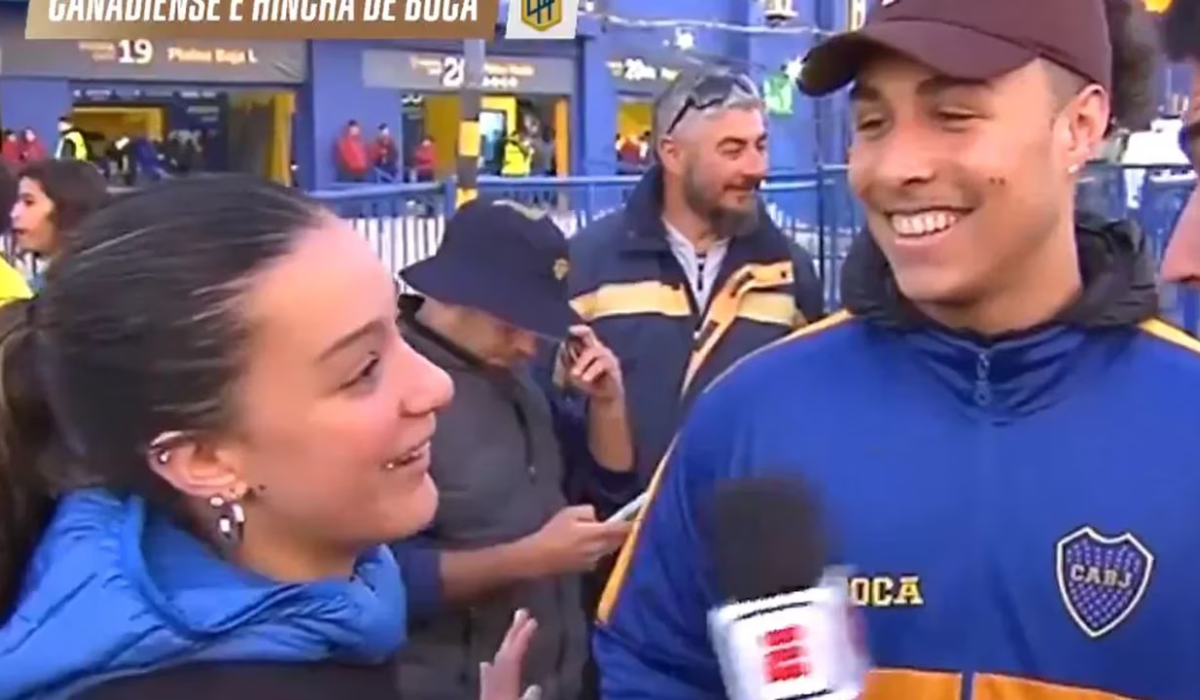 El muchacho oriundo de la ciudad canadiense de Montreal fue entrevistado por un periodista de la señal deportiva ESPN en las afueras de la bombonera. El joven que no sabía hablar español llevaba una campera con los colores azul y amarillo.